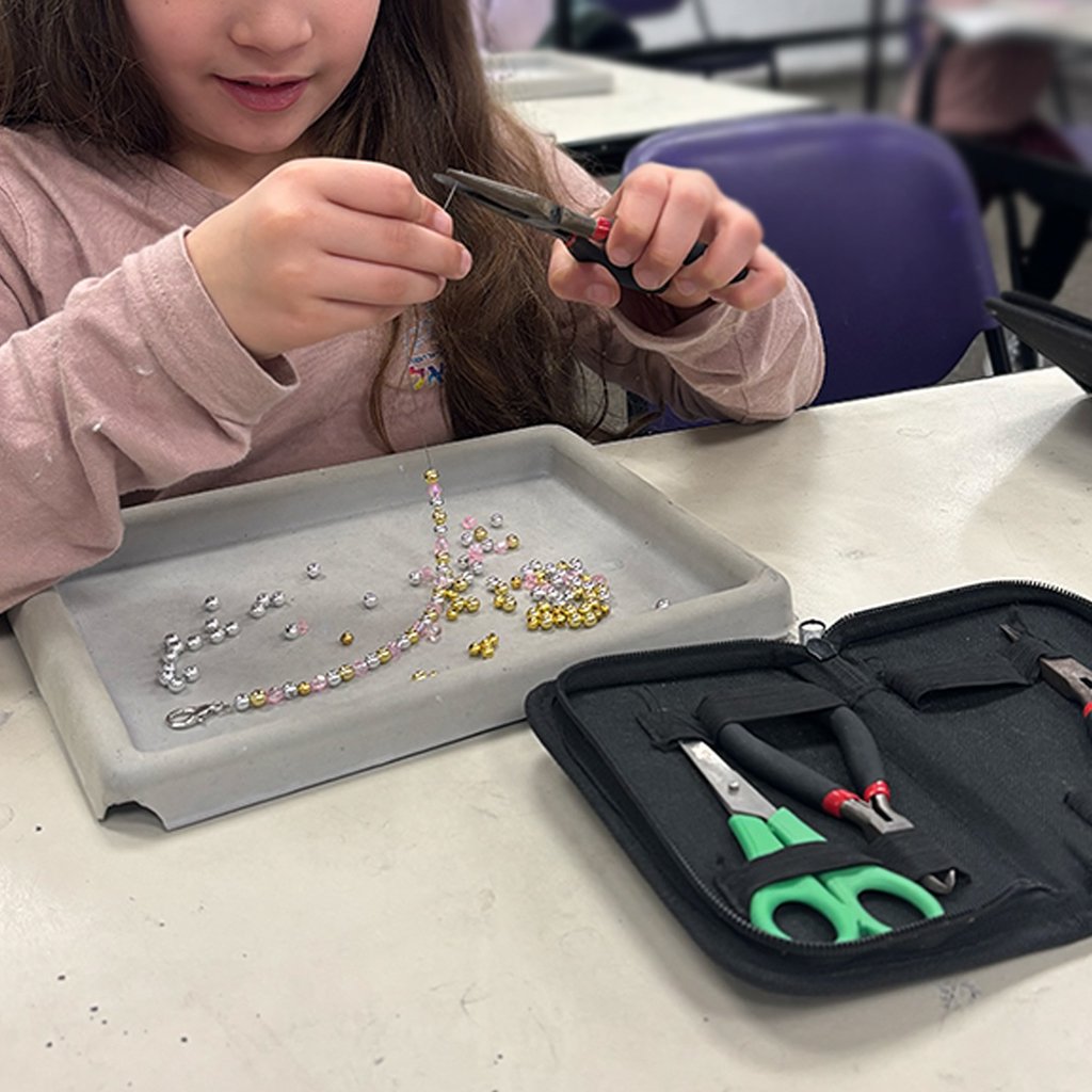 מתאים ליוצרים מגיל 6 ומעלה בליווי מבוגר (דורש שימוש בפלייר ובחרוזי מעיכה לסגירה סופית).