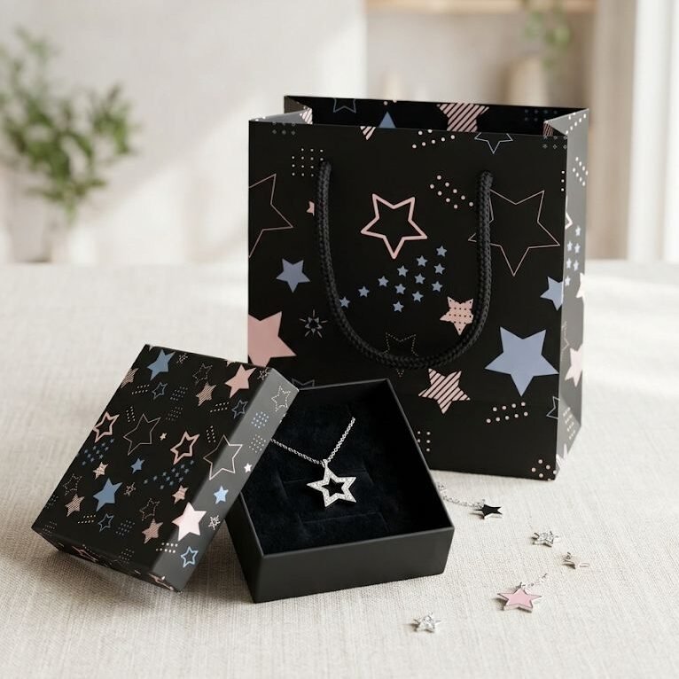 הסט כולל: קופסת תכשיטים + שקית נשיאה תואמת.